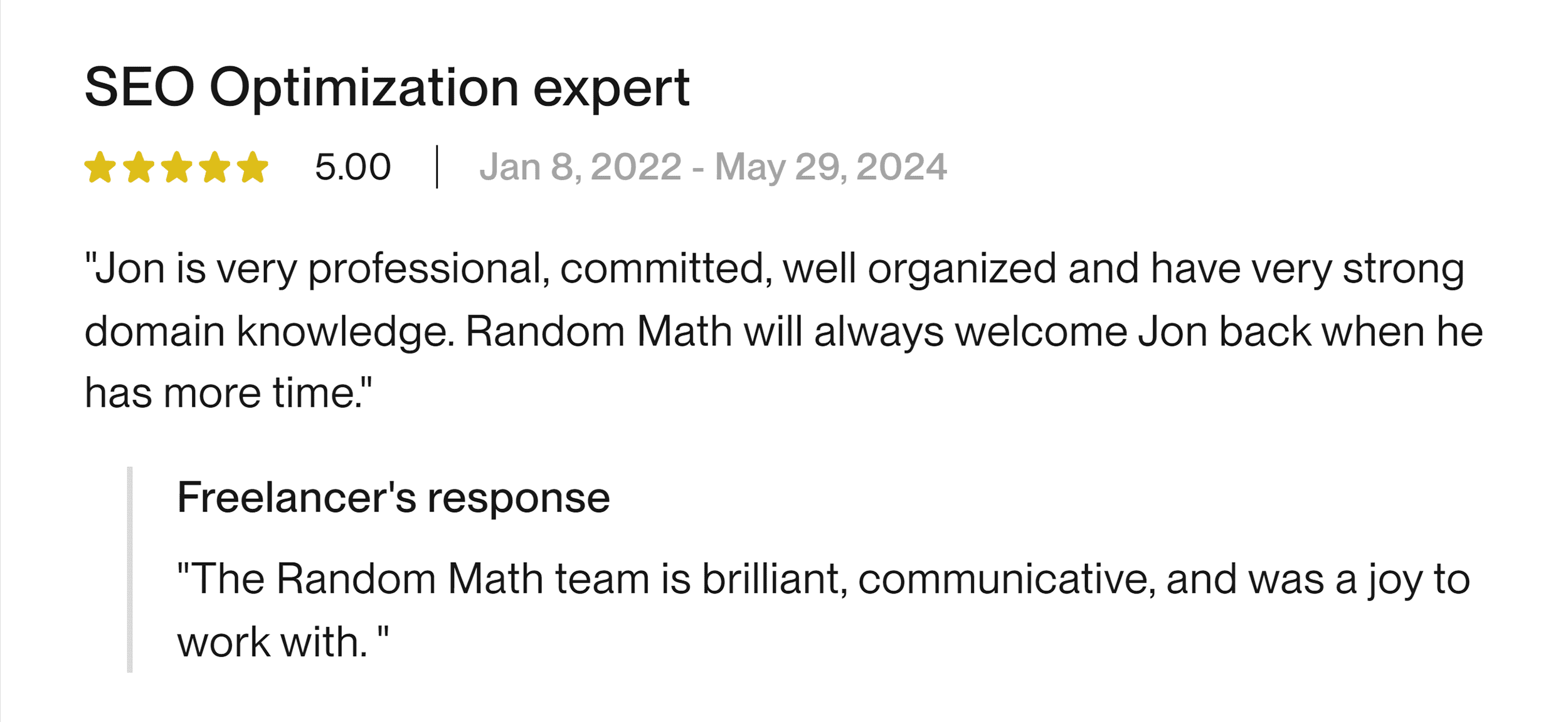 Another option is hiring a freelance SEO consultant on a marketplace like Upwork and Fiverr. The advantage of a marketplace is that you can see the results more transparently.