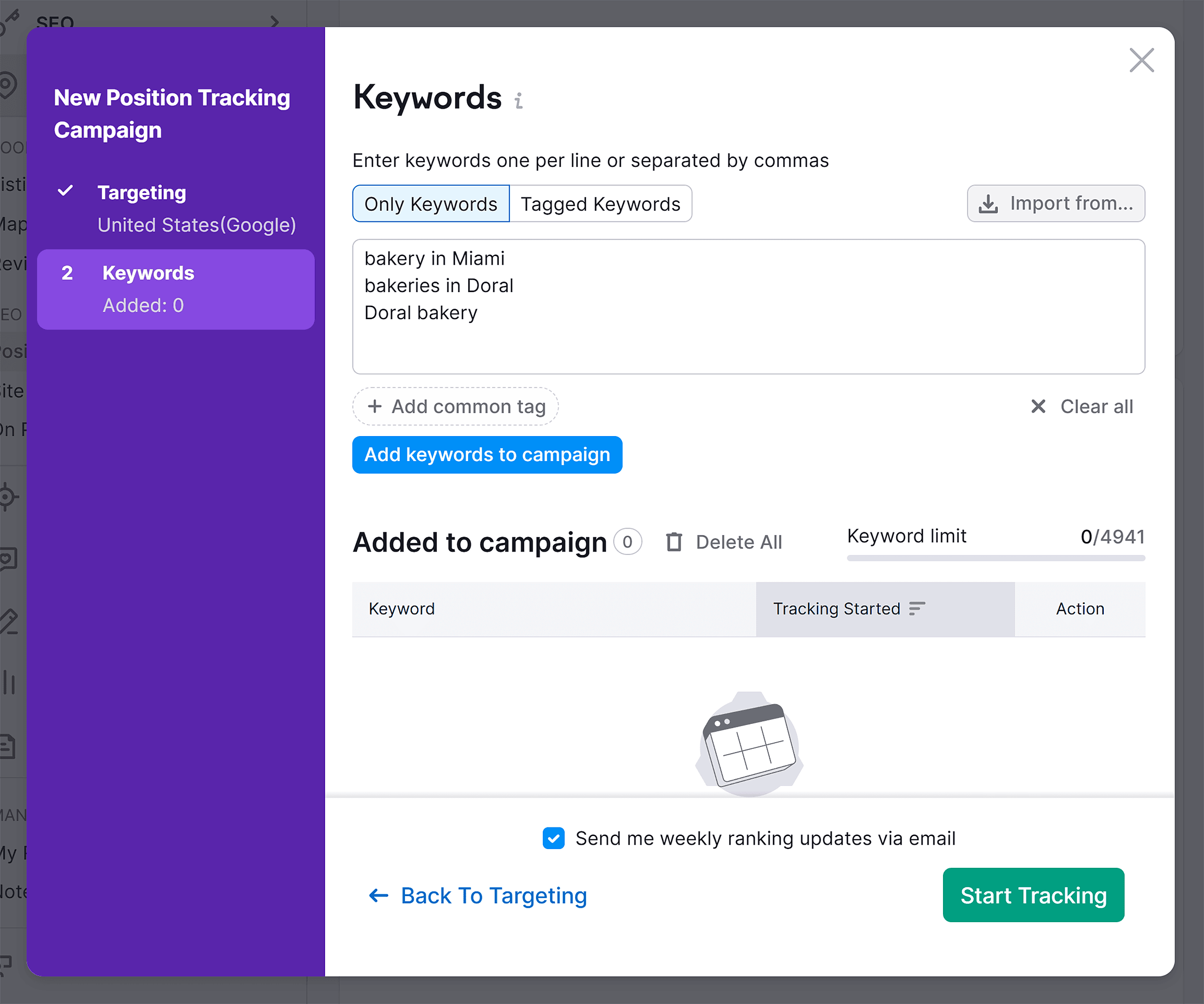 Then, add your location and target keywords.